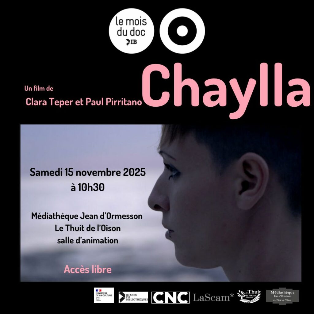 La médiathèque du Thuit de l’Oison a le plaisir de participer au Mois du Documentaire, projet national en projetant le samedi 15 novembre à 10h30 le film de Paul Pirritano et Clara Teper intitulé « Chaylla ». Ce film documentaire porte sur les violences conjugales :