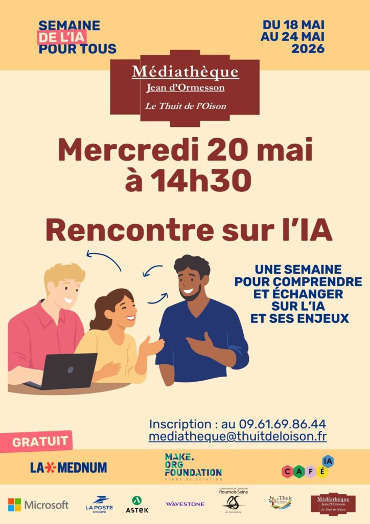 Cet événement est organisé dans le cadre de la Semaine de l’IA pour Tous, un temps fort national pour découvrir et mieux comprendre l’IA, co-porté par La Mednum, Make.org Fondation et Café IA, aux côtés de nombreux partenaires engagés.